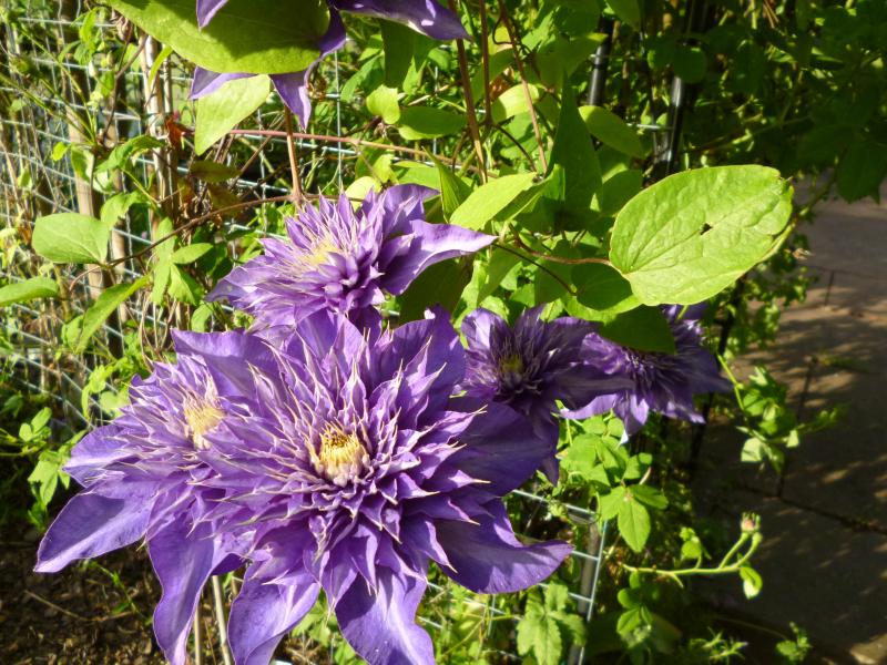 In Schleswig-Holstein Nord nun auch beginnende Clematisblüte: Meine Cl. fauriei Campanulina Plena ist in 6 Jahren den ca. 2 m hohen Sichtschutz hochgeklettert und erreicht nun auch terrassenseitig mit den ersten Spitzen den Boden