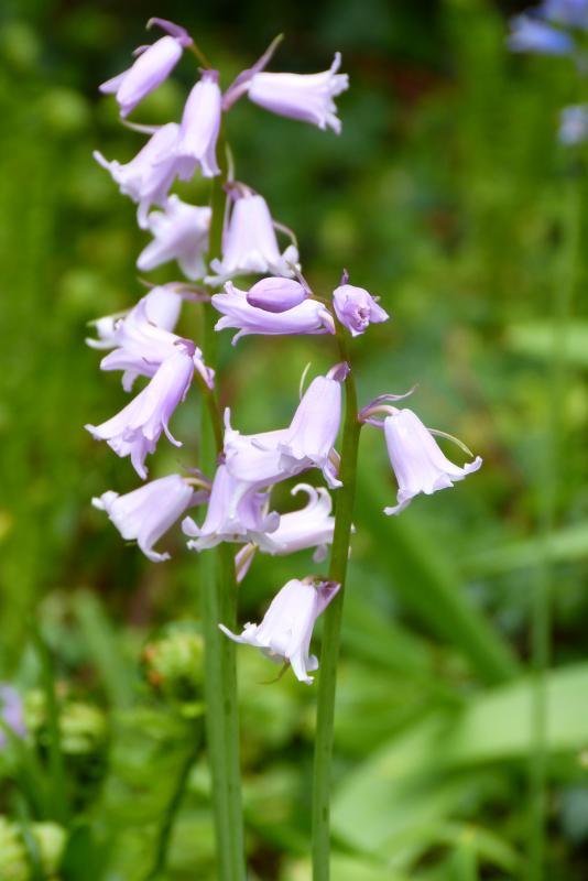 Die schmale Blütenform ist typisch für Hyacinthoides non-scripta, allerdings ist bei der Art der Stängel mehr überhängend gebogen und richtet sich erst im Verblühen senkrecht auf. Bei den Hybriden gibt es alle Übergangsformen, allerdings habe ich außer der weißen brakteaten noch keine gesehen, die sich stark bestockt. Das ist eher für Hybriden kennzeichnend.