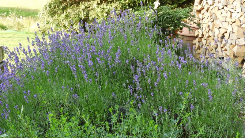 Anfangs gab es ein paar Pflanzen dort, die ich rausgeschmissen habe: Gagelcystus, Indigofera, Buglossoides... andere wie Salvia nemorosa sind verschwunden. Nepeta racemosa habe ich stark reduziert. Zu den Munsteadmassen und wenigen 'Hidcote Blue' habe ich in den letzten Jahren viele Lavendel dazugepflanzt. Leider gab es in den ersten Jahren Wirren und Sortenchaos, zudem fand ich einen der Lieferanten ziemlich chaotisch. Ich bin immer noch sachte am modifizieren. Aber seit diesem Jahr bin ich zufrieden mit der Fläche. Die ist ca 400 Quadratmeter gross, neben einem Gewächshaus, nach Norden und Westen ansteigend, dahinter Gebüsch und ein paar Eichen. Wer je im März Laub von Q. bicolor und macranthera aus Lavendel fischt, weiss, was ich durchmache.