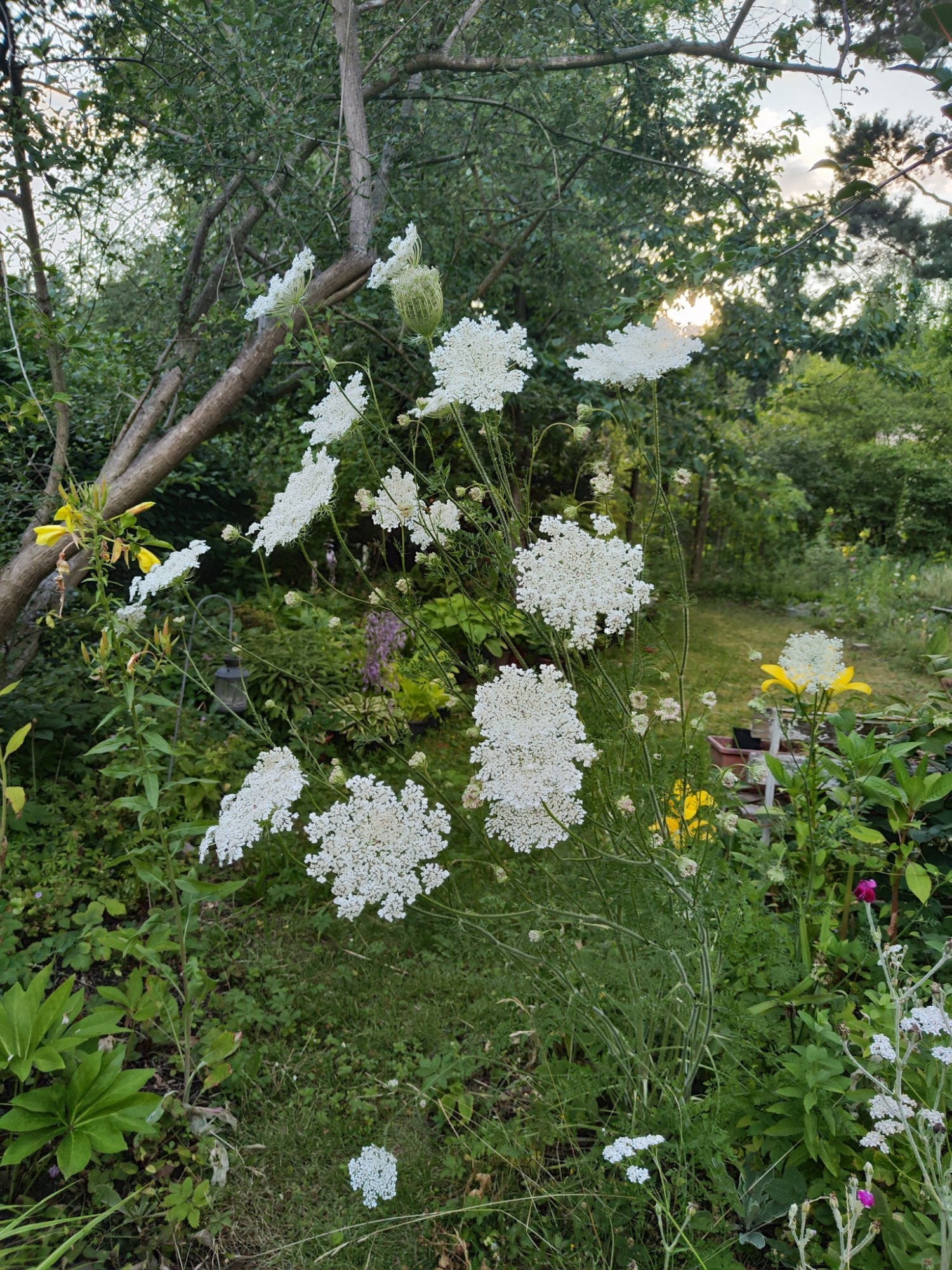 Hier blühen gerade reichlich wilde Möhren. Die sind bei den Winzbienen und vielen Käfern sehr beliebt, wilde Schafgarbe ebenfalls.
