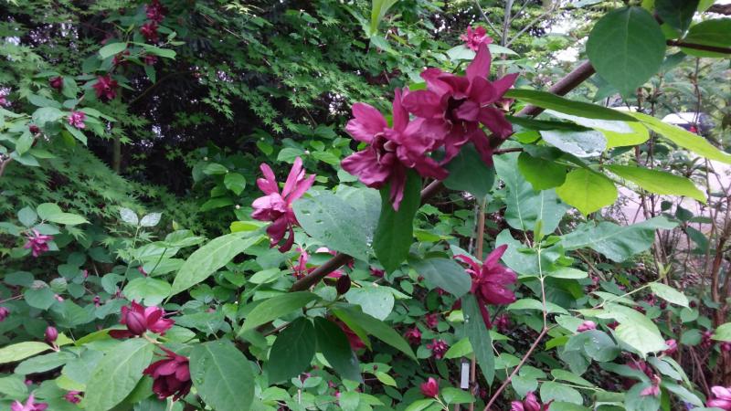 Euonymus cornutus var. quinquecornutus blüht dieses Jahr sehr üppig.