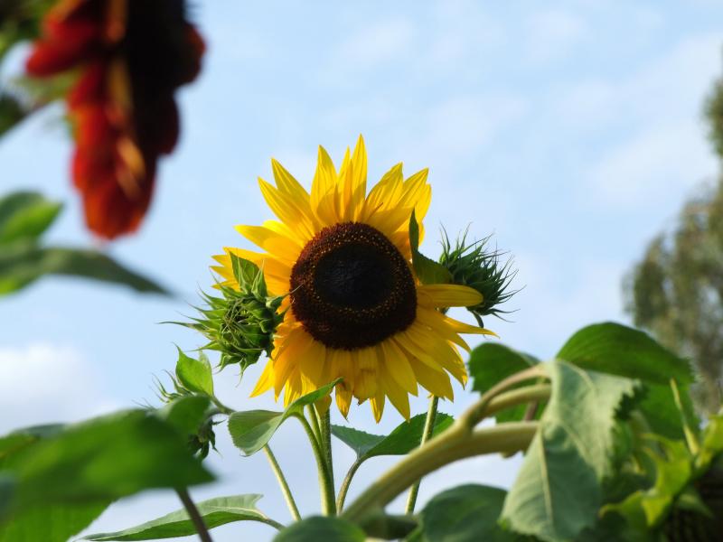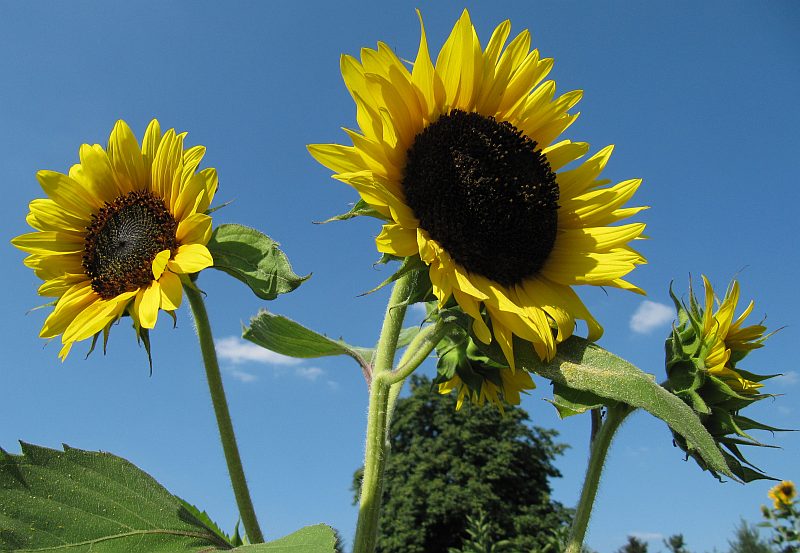 Und passend zum Wetter blühen die Sonnenblumen um die Wette. Einige hängen aber und hoffen auf eine abendliche Flutung.