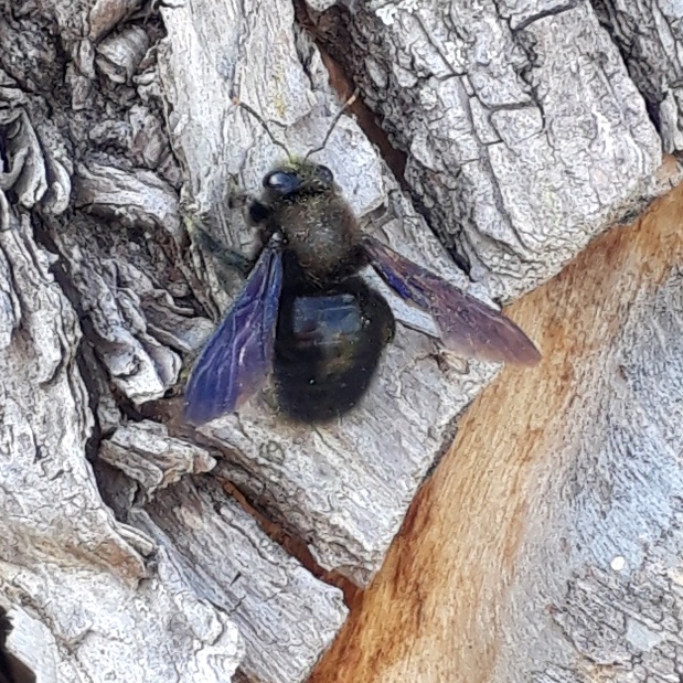 Anthophora plumipes und Xylocopa violacea, wie schön, sieh nur zu, dass Du das Holz im Herbst beiseite legst und nicht aus Versehen in den Kamin wirfst!