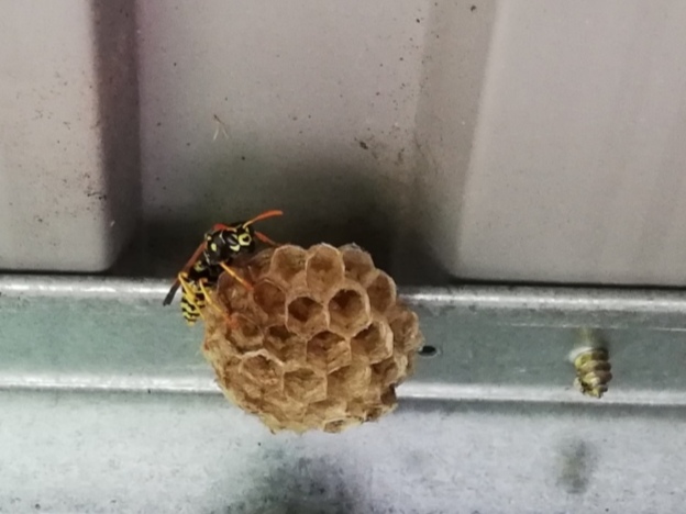 In meiner Gartenhütte wird gerade ein ganzes Ressort aufgebaut. Ich habe mindestens 7 Nester gezählt, auf allen sitzen momentan recht freundliche Wespen. Und ich dachte bisher, die würden ein größeres Territorium für sich beanspruchen. :o