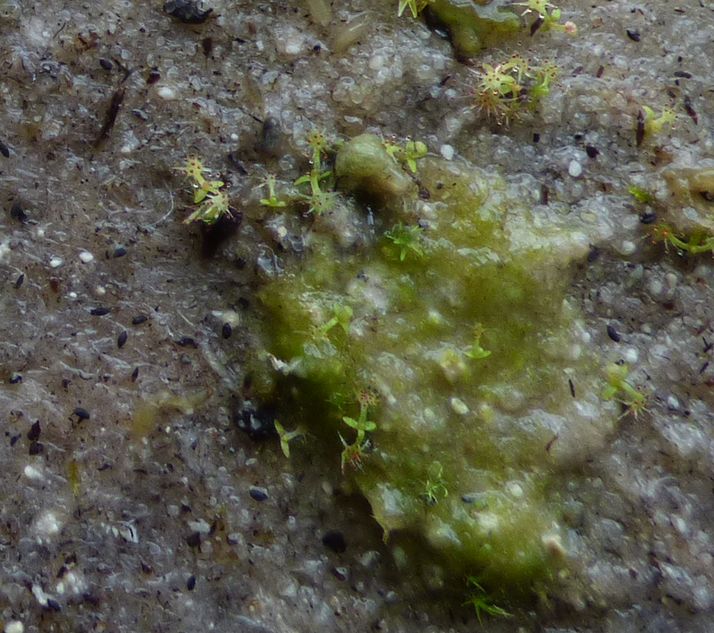 Die Sämlinge, die sich hier neben der Mutterpflanze selbst ausgesät haben, sind immer noch winzigst klein und wollen garnicht wachsen.