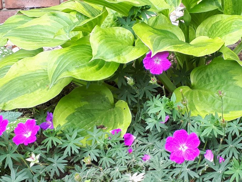 Bei Geranium sang. in pink bin ich mir bei immer unsicher. Ich meine, ich hätte 2 verschiedene da die Blätter sich etwas unterscheiden. Glaube ich... die Blüten unterscheiden sich nicht wirklich. Ich werde sie dann mal nebeneinander fotografieren.