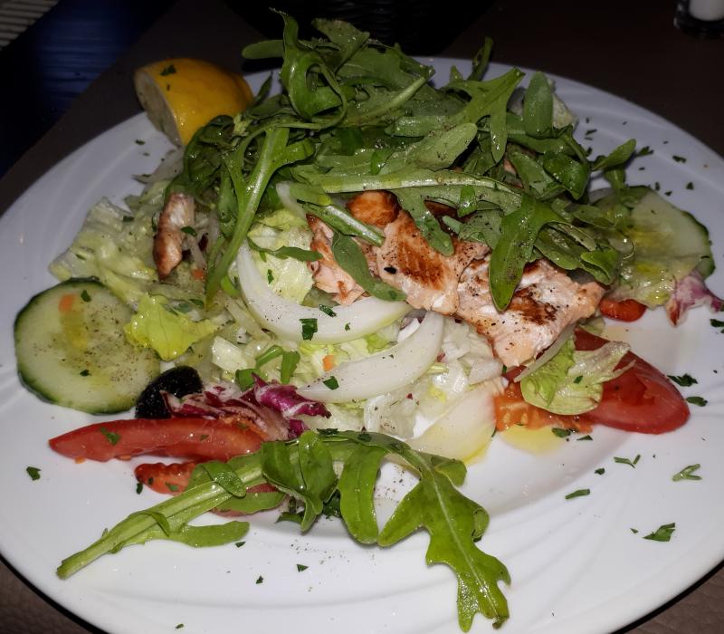 Am Freitag hatte ich beim Italiener Salat mit gebratenem Lachs