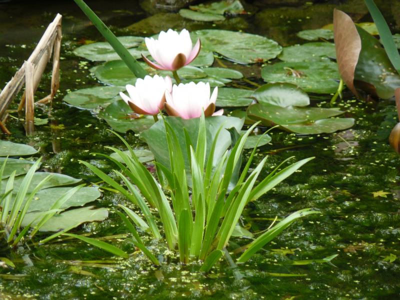 Die Seerosen haben dort auch schon geblüht . Obwohl dort mehr Schatten ist als an meinem Teich .