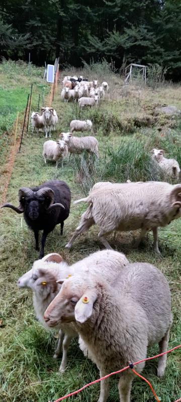 Gestern haben wir tatsächlich die letzte weibliche Gruppe in die große Herde eingefügt. Sagenhafte (für uns) 77 Tiere stehen nun beinander. Wer als Spaziegänger oder Förster bislang dachte: "Och, das sind die mit den Paar Schäfchen"...