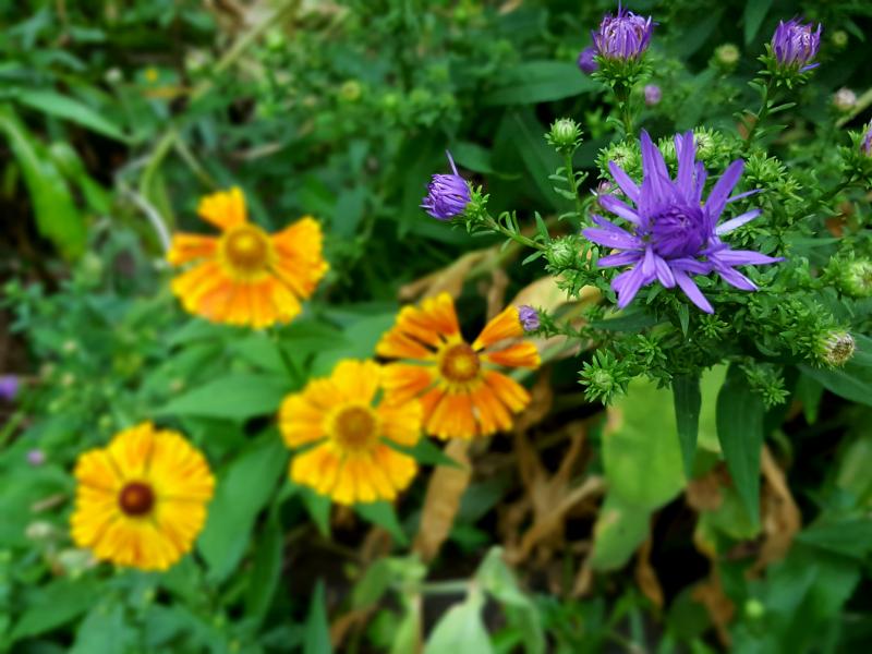 Die ersten Astern bringen wieder etwas mehr Blau in den zZt gelb dominierten Staudengarten.