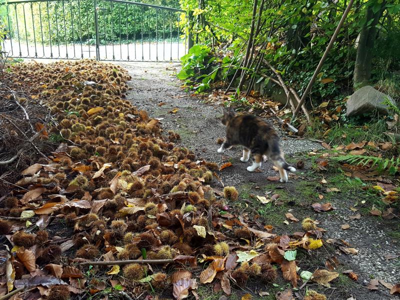 Unsere Katze war der Meinung, ich müsse die Auffahrt von den Eßkaigeln befreien, damit sie unverletzt ihre Kreise ziehen kann - also