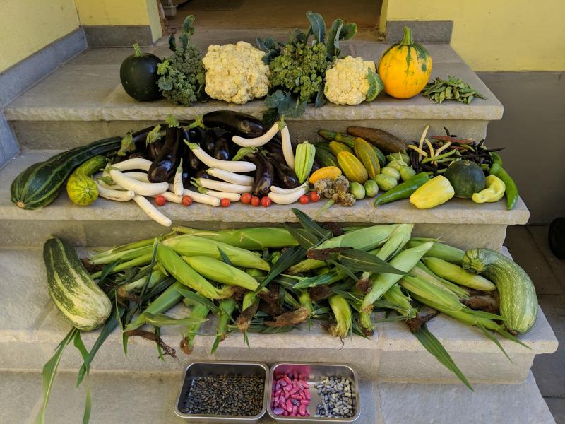 Heute gab es sehr viel Kukuruz, Melanzani und Karfiol zu ernten. Der eine Karfiol ist riesig, gut doppelt so groß wie die die man üblicherweise im Supermarkt bekommt. Zudem gab es auch noch Zucchini, Paprika, Brokkoli, Fisolen, Körnerbohnen, Gurken, Antillen Gurken und Erbsen. Tomaten waren leider fast keine zu ernten und von den Beiden Wassermelonen hat es nur eine aufs Bild geschafft.