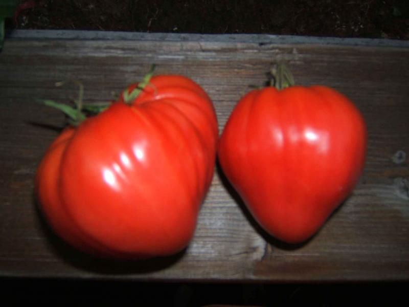 Hier ein Bild von Nicky Crain:rosarote, herzförmige große Früchte, sehr fleischig, wenig SamenDiese Sorte werde ich sicher nächstes Jahr wieder anbauen :Plg Bettina