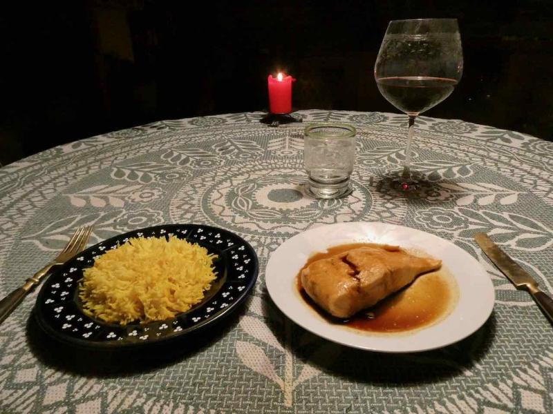 Hier gab es nochmal Weihnachtsessen: Hirschgulasch. Eine Portion war noch eingefroren.