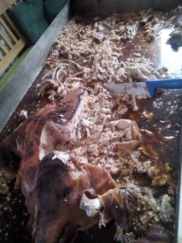 Wir haben gestern (Freitag) ein Schweinchen eingewürzt und in der Bäckerei zur Nachtruhe in die Kühlung gegeben.