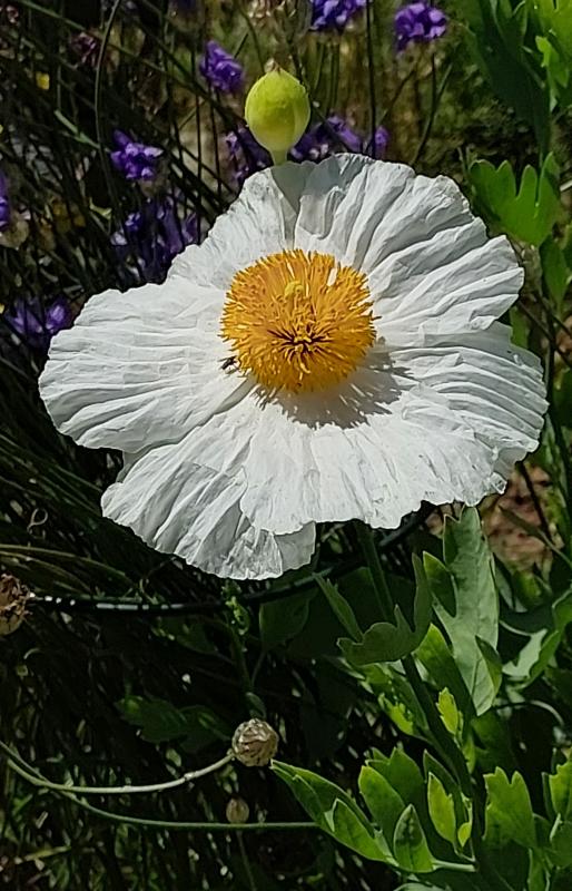 Ein Spiegelei im Garten. Romneya. Etwas für Geduldige. Stand 6 oder 7 Jahre hier ohne Blüten. Erst seit 2 Jahren zeigt sie sich.