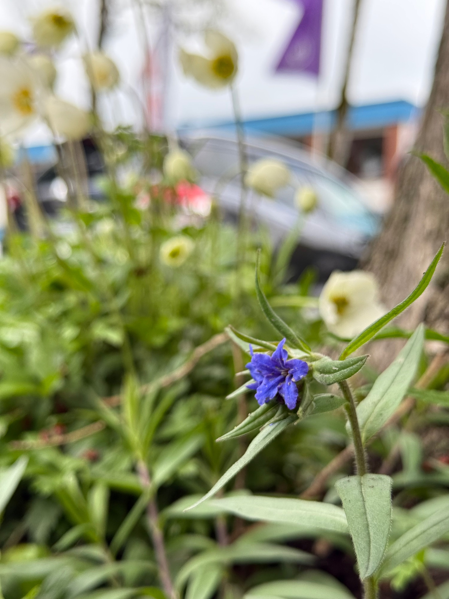 Anemone sylvestris, purpurblauer steinsame und der erste Lein ( hat sich erst nach Mittag geöffnet und blüht gerade immer noch )