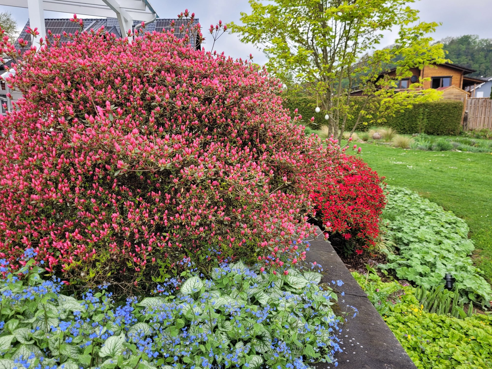 Auch zusammen mit meinen beiden bonbonfarbenen Azaleen... hier kurz vor der Vollblüte.