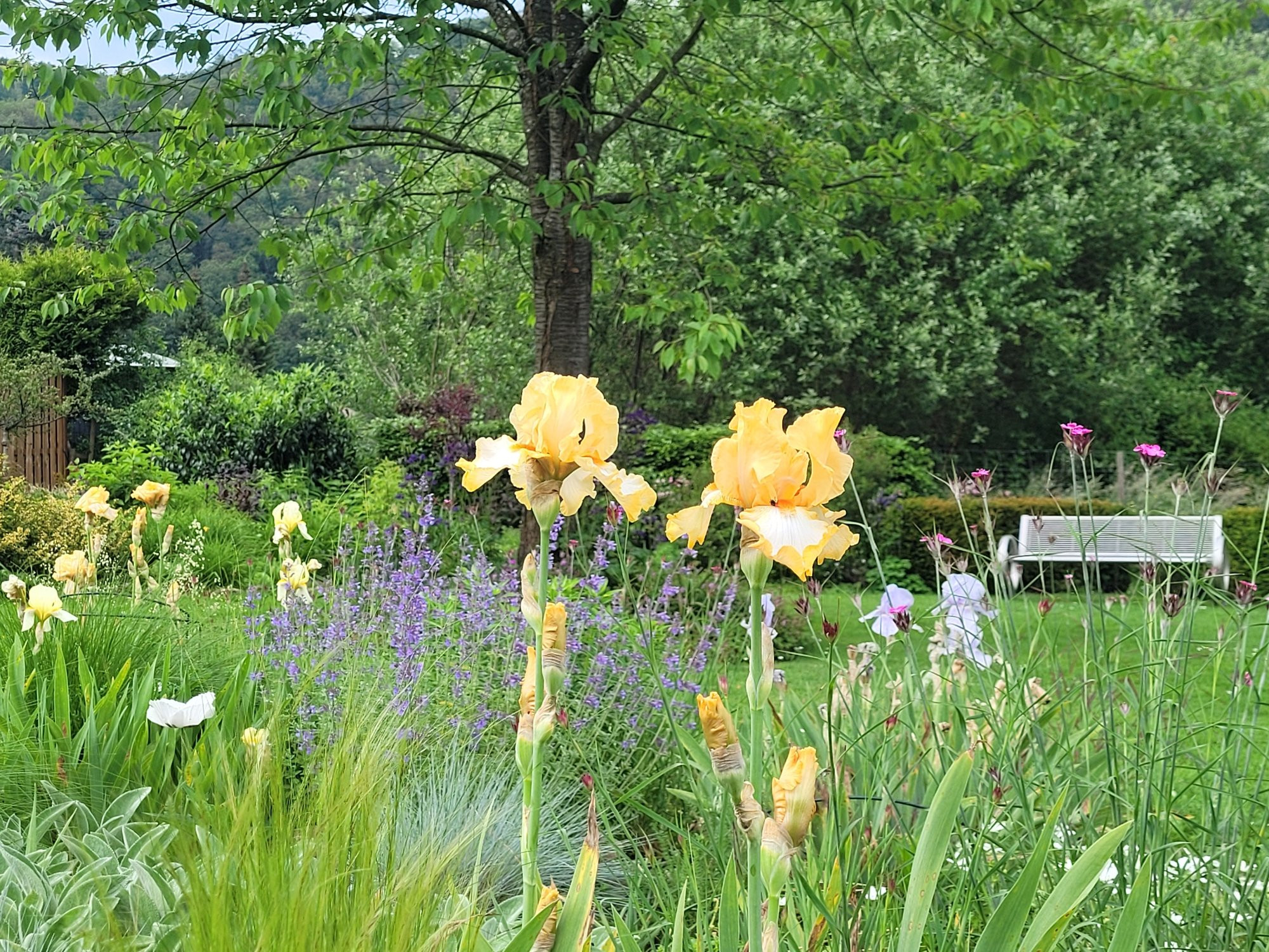 Hier auch eine Funkie mit Waldaster und Begonia sutherlandii: