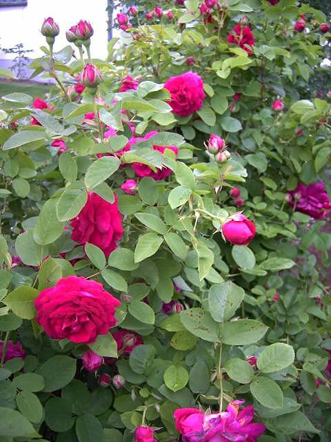 Hier habe ich doch noch mal einige Fotos von der vermeintlichen Bourbonrose in Groß Sarau gefunden.Die ältere Gartenbesitzerin hat diese Rose schon von ihrer Mutter geerbt und wwurzelecht als lange,lange Hecke gezogen.