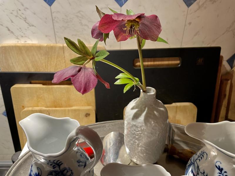 bei mir musste eine gartentrottellaubschnittblume versorgt werden – so verschönt sie nun inhäusig die küchenzeit.