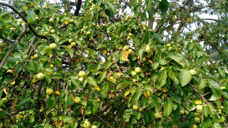 An einem Hang hier in der Gegend steht ein riesiger alter Baum. Dieser macht kleine bis mittelgroße, grüne Äpfel. Dieser machte 2018 und heuer (nur wenige wegen Spätfrost) Äpfel, die deutlich bitter sind. Ich denke das ist bei dem Baum Standard und keine Anomalie. Da sich der Geschmack dieses Jahr wieder bestätigte, fragte ich mich, was man daraus machen könnte und ob es ähnliche Sorten gibt.