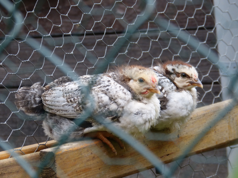 Dieses Jahr sind ein paar Küken dabei, bei denen silberne Wyandotten mitgemischt haben. :)