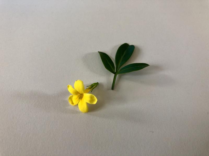 heute im öffentlichen grün berlins, ein offenkundig schon älterer flacher strauch mit chromgelben blütchen – wohl jasminum fruticans