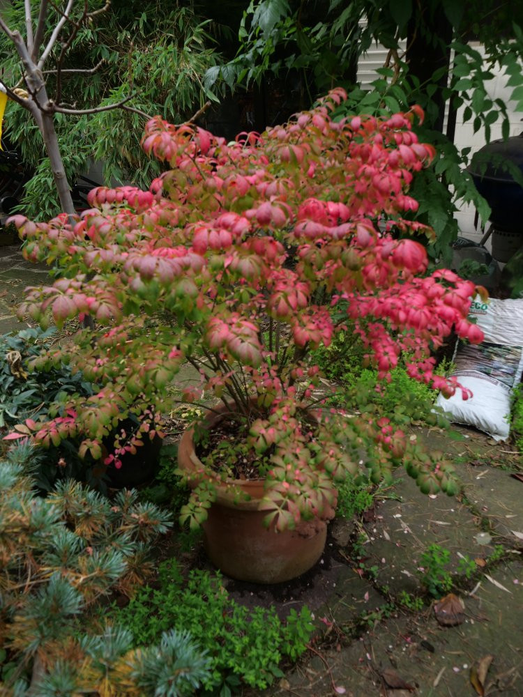 Auf unserer Terrasse- Eunonymus alatus 'Compactus' , noch nicht ganz durchgefärbt