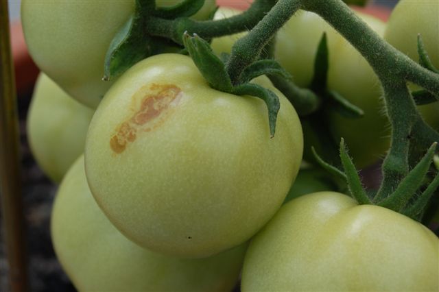 Hilfe!Brauner Fleck auf Tomate. Das wird doch nicht etwa......?Kann mir jemand was dazu sagen? Soll ich die Tomate entfernen?Gruß Bernd