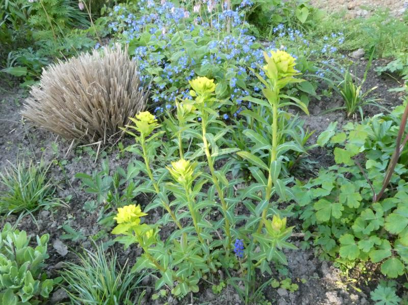 Komisch, ich jäte unzählige Sämlinge davon, um der Invasion etwas Einhalt zu gebieten. Aber die Goldwolfsmilch ist sehr schön im Frühlingsgarten. :) Vielleicht mag sie den schweren, frischen Boden.