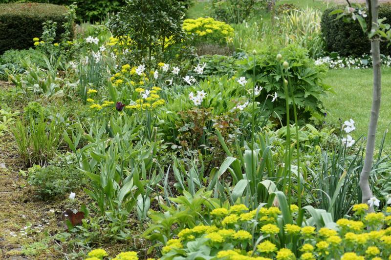 Nach den heißen trockenen Sommern der letzten Jahre übernehmen Sämlinge von E. characias allmählich große Teile des Gartens. Außer in den schattigsten und feuchtesten Lagen tauchen überall Sämlinge auf.