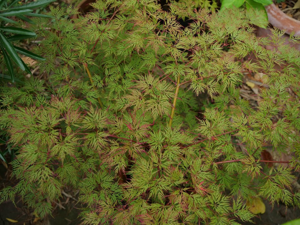 Noch ein paar Fotos Cercis avondale - Acer 'Emerald Lace' - und Schirmtanne umarmt von Paeonia rockii