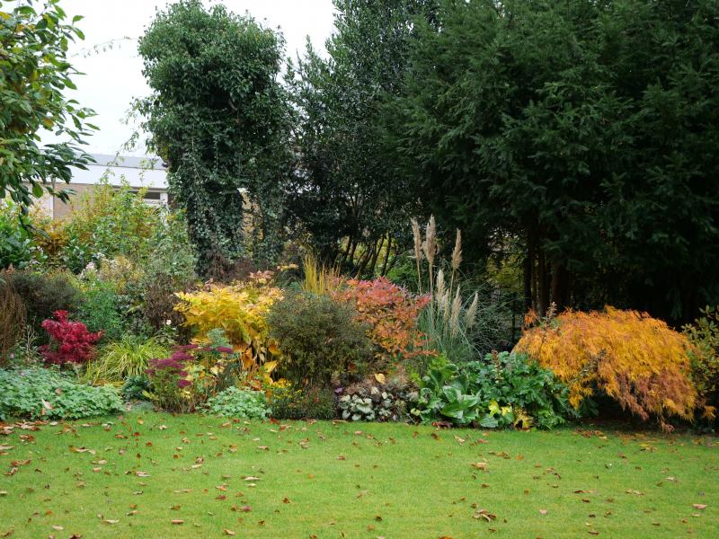 eine wundervolle ecke mit dem climber an der wand und der leuchtenden rahmung - und auch in diese richtung eine geliehene färbung in nachbars garten.
