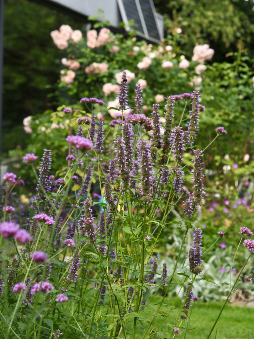 An anderen Stellen herrscht noch pure Sommerfülle. Die Insekten lieben die Agastache Black adder: