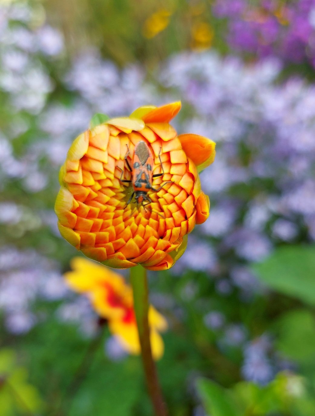 Andere Wanze auf anderer Blüte, leider unscharf.