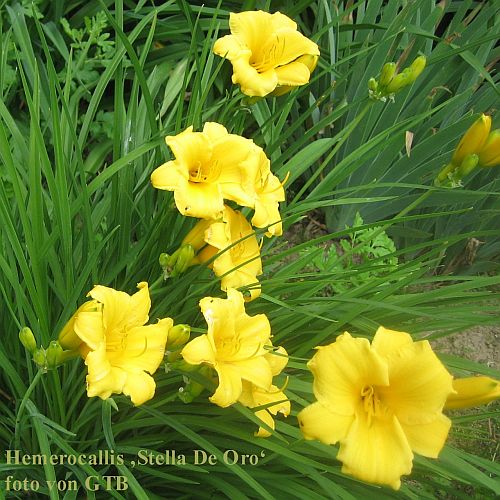 Guten Abend!Mich hat bei der Stella d'Oro immer sehr gestört, dass sie ab dem zweiten Jahr nach Beginn der Blütezeit massenhaft gelbe Blätter bekam, die nur sehr mühsam zu entfernen waren. In der Zwischenzeit haben wir uns getrennt, und ich bin kein bischen traurig darüber. Es gibt genügend schöne Tagliliensorten. Viele liebe GrüßeElke