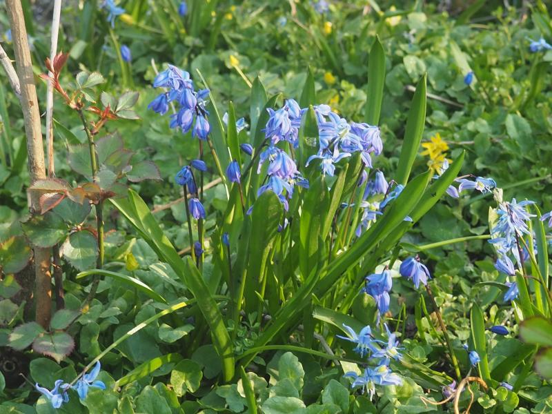 Die hier sind vor zwei Jahren aus dem Kindheitsgarten in Garten 1 übergesiedelt. Der Boden ist viel reicher an Humus und Nährstoffen. Tatsächlich zeigen sich die Pflanzen schon jetzt viel üppiger. Scilla siehei ist klar erkennbar.