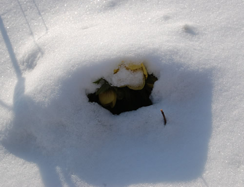 Ist das nicht eine schöne Lenzrose?Die gelbe mit Kupfernektarien. Hoffentlich sind sie dann nicht fertig mit Blühen unterm Schnee, sollte es doch mal Lenz werden!