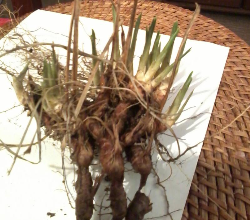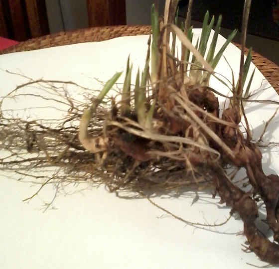 Und es hat längliche Rhizome. An einer Stelle ist das Rhizom etwas angefressen, innen scheint es weiß zu sein.