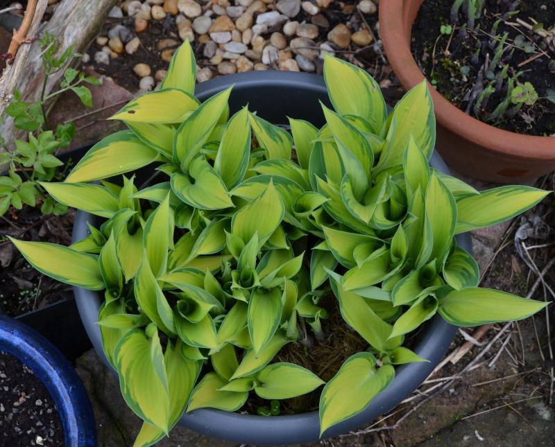 Schneckenmäßig sieht es dieses Jahr hier sehr gut aus, ich habe noch keine Schäden entdecken können. Letztes Jahr haben die Biester die ausgepflanzten Hostas an zwei verschiedenen Stellen schon im Hörnchenstadium "abgemäht", das hat keine der Pflanzen im weiteren Verlauf der Saison mehr wett machen können.Der Frost hat nur zwei Hostas geschädigt, die schon am weitesten entwickelt waren, allerdings habe ich mir auch nicht die Mühe gemacht, die beiden abzudecken, weil sie schon vorbelastet waren. Auf 'Stained Glass' habe ich mich beim Jäten aus Versehen gesetzt, weil ich das Gleichgewicht verloren habe und beim schnellen Aufspringen bin ich dann slapstickmäßig auch noch auf 'Tokyo Smog' getreten. ::)Der größte Hosta-Schädling in meinem Garten bin also momentan ich. :-XDie ganzen Topf-Hostas - und das sind viele - habe ich vorsichtshalber noch unter der Pergola stehen, die sind alle schon weit entwickelt. Nach den Abdeck-Exzessen der vergangenen Jahre mache ich es mir diese Jahr einfacher.