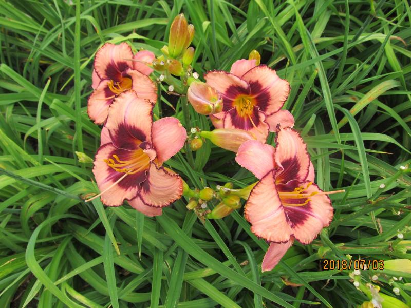 Das solle Navel Assault sein - ist es aber nicht - kam direkt vom Züchter selbst. Das Teil blüht überreich, jede Blüte hat einen gefransten Rand, das Laub ist grottenschlecht und immer voller Pilzflecken. Die Übersiedelung in den Sämlingsgarten hat die Pflanze mit starkem Zuwachs und noch mehr Blüten beantwortet: