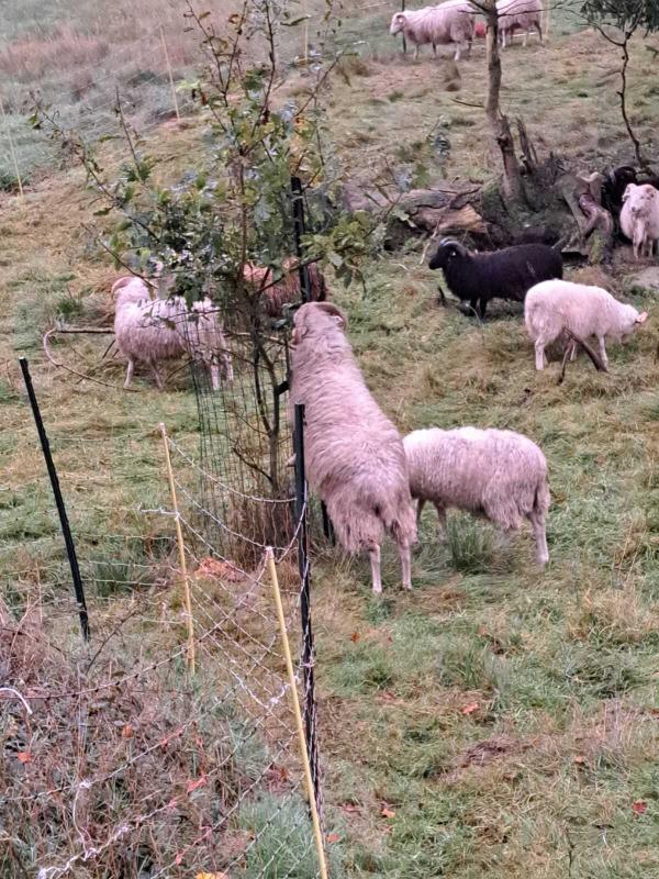 Hernach im gestreckten Gallopp 3 Schlachttiere rausbitten. Das sind alles sehr alte Tiere. Akut kann ich das Programm Ovicap mal wieder nicht öffnen. Aber Fakt ist, dass 2 davon noch im Landkreis Göttingen geboren worden sind und die Dritte ist die Mutter von einer dieser beiden. Nachdem diese 3 raus waren, konnte die große Herde auf die neue, heute gezäunte Fläche... dann wieder abzäunen... puh.