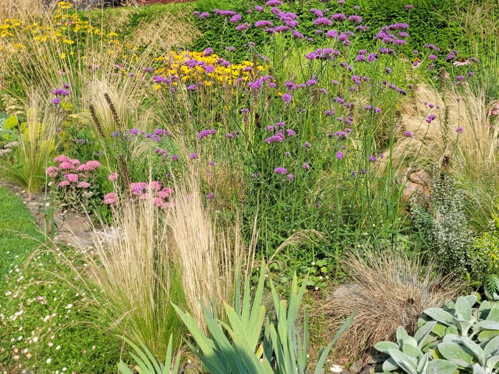 Grasig und wuselig präsentiert sich auch das Steppenbeet... hier nochmal in besagtem Gelb/Lila.