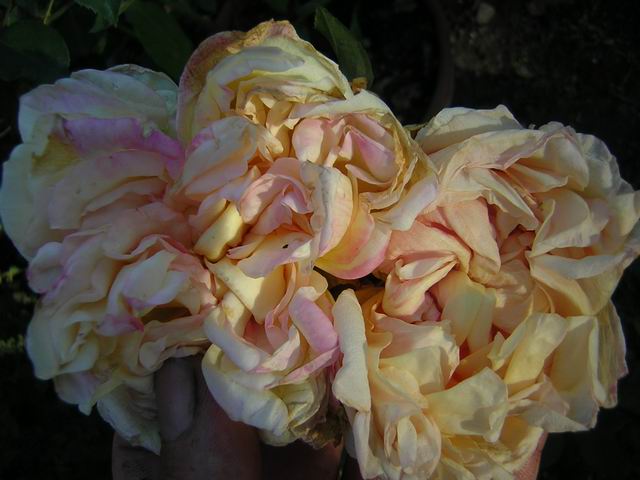 mme charles und mme sablayroles sollten es nicht sein, denn die werden ganz anders beschrieben.....beide vorwiegend in grundfarbe abricot-leder und gut gefüllt ::)papillion käme hin...halbgefüllt bis gefüllt...dazu passt, dass bei frenchtearoses die bilder zu papillion und mme sablayrolles sich sehr! ähnlich sind