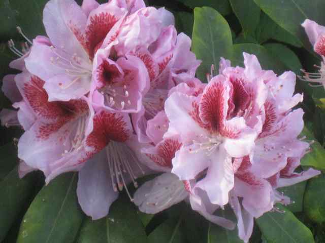 Hier eine eigene "Züchtung": Ein Rh. fortunei-Sämling (vielleicht sogar "rein"), der seine Blütenblätter neckisch nach hinten schlägt. Sieht nicht unflott aus. Zudem hat die Pflanze einen guten Blütenduft.