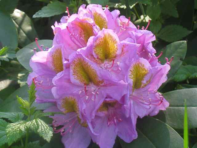 Die,vanessa, ist in den meisten Fällen irreführend, da die Wuchsform überwiegend von den Boden- und Lichtverhältnissen bestimmt wird.Dieser Rhodie steht unter einer sehr großen jap. Kirsche, und muss sich deshalb nach dem Licht recken. Ich weiß nicht, wie er sich entwickelt hätte bei freiem Stand.(danke auch fuer das ganzkoerperfoto. fuer mich ist es immer interessant, auch die wuchsform und die gesamtwirkung zu sehen.)