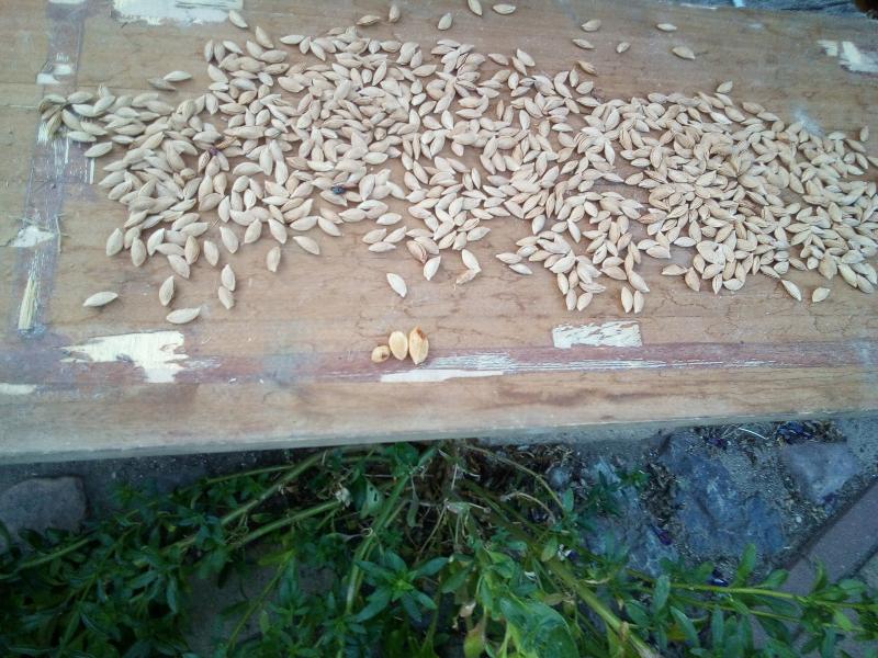Herr Hartmann knackte (Schraubstock) und enthäutete die Kerne vorsichtig, dann keimen sie sofort, werden aber anfällig, daher wurden sie in der Züchtung gespritzt.