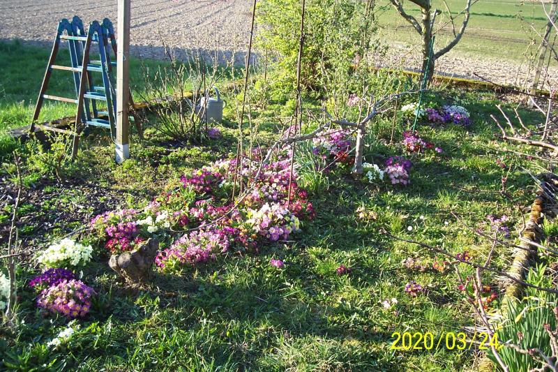 Damit ich Euch nicht mit tausend Einzelbildern langweile hier ein Blick in meinen Beerengarten mit Primel satt unter den Stachelbeeren.