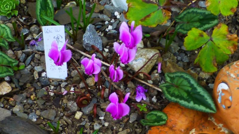 Cyclamen x hildebrandii (hederifolium x africanum) ist in meinen Augen eine überflüssige Kreuzung, da sie wie hederifolium aussieht, oder auch wie das kaum zu unterscheidende africanum, aber nicht so zuverlässig winterhart ist. Ich halte sie vorsichtshalber im Topf.